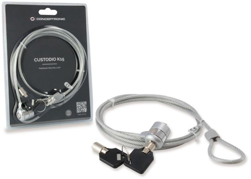 Conceptronic Laptop zár kulccsal, Conceptronic CNBSLOCK15, 1, 5 m, szürke (CNBSLOCK15T)