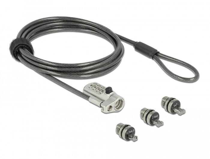 Ez a Naviloch laptop biztonsági zár lehetővé tegye, hogy különböző eszközöket, például laptop, kivetítő vagy képernyő, bárhol lezárjon. Az acél kábel 2 méter hosszúságával és 4 jegyű kombinációs zárral könnyen leköthető bármilyen tárgyhoz, mint székek, asztalláb vagy más hasonló eszköz és így készüléke lopásbiztos lesz. Lecserélhető zárfejek Ennek a biztonsági kábelnek a különlegessége a három mellékelt zárfej. Ezek egyszerűen csatlakoztathatók és váltogathatók igény szerint. A három leggyakoribb zártípus a Kensington (3 x 7 mm), a Noble Wedge (3,2 x 4,5 mm) és a Nano csatlakozós (2,5 x 6 mm) biztosítható ezzel a biztonsági kábellel. Műszaki adatok Acél kábel műanyag bevonattal 4 jegyű kombinációs zár Kompatibilitás: Kensington csatlakozó (3 x 7 mm) Noble Wedge csatlakozó (3,2 x 4,5 mm) Nano csatlakozó (2,5 x 6 mm) Kábelátmérő: kb. 4,4 mm Kábelhossz: kb. 2 m Szín: ezüst / fekete Rendszerkövetelmények Biztonsági zár az eszközön A csomag tartalma Laptop biztonsági kábel 3 x zárfej Használati utasítás Csomag Retail Box Gyártó: Navilock
